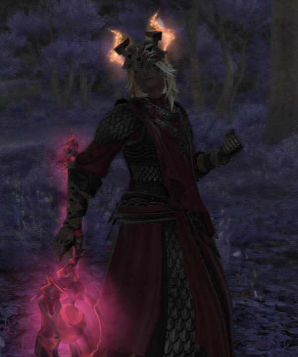 A Knights Dragoon assigned by the Congregation of Our Knights Most Heavenly as an active on/off Captain of the Immortal Flames in the war support of the Eorzean Alliance war against Garlemald, leading a Company size of both men and women from the Alliance onto the battlefield.